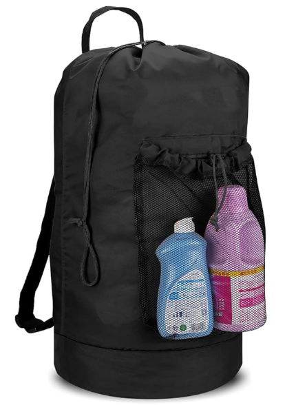 A backpack-style laundry bag makes it easy to carry down to the laundry room without excuses.