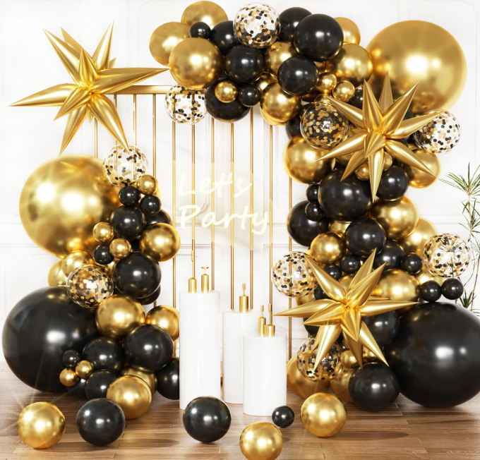 Black and Gold Balloon Garland Arch Kit