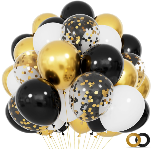 68Pcs Black White Gold Balloons with 12 Inch Black Gold Confetti Balloons for Graduation