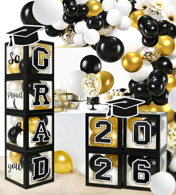 2026 Graduation Party Decorations Set of 4 Boxes with 129pcs Balloons Arch Garland Kit