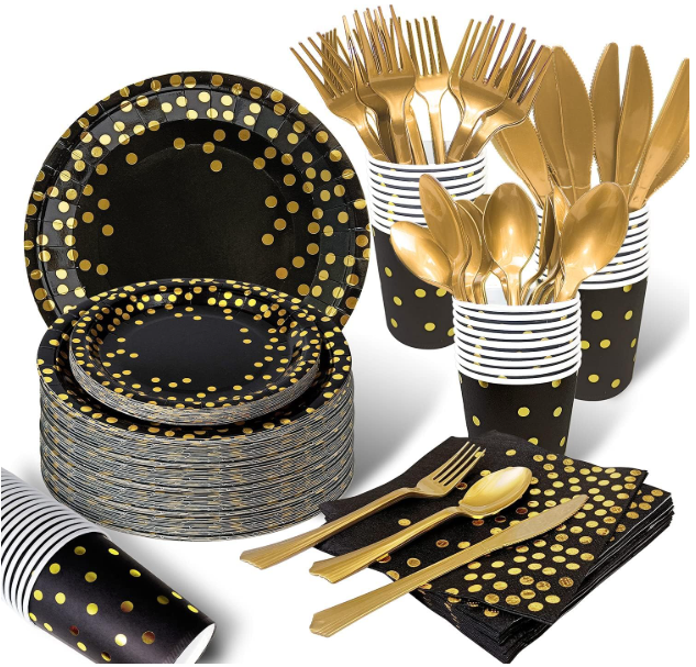175PCS Black and Gold Paper Plates Party Supplies for 25 Guests