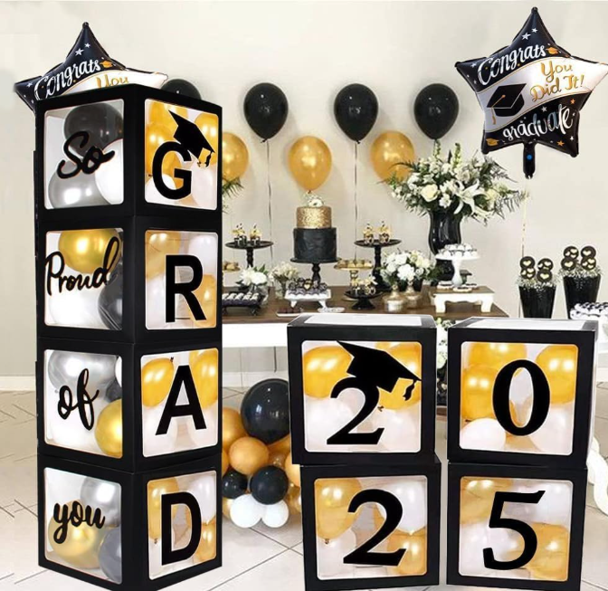 2026 Graduation Decoration Black Balloon Boxes. They come in other colors as well.
