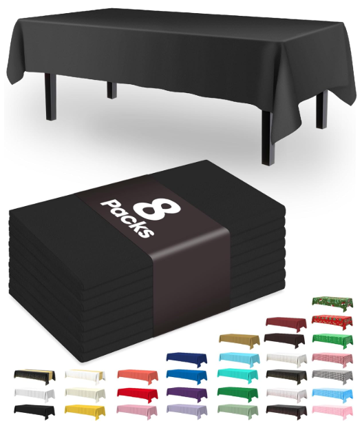 Coordinated Plastic Table Cloth for all your tables at the party – Disposable 8 Pack