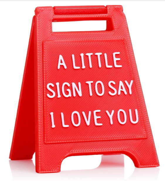 A cute sign that can sit on their desk hutch and reminds them of you.
