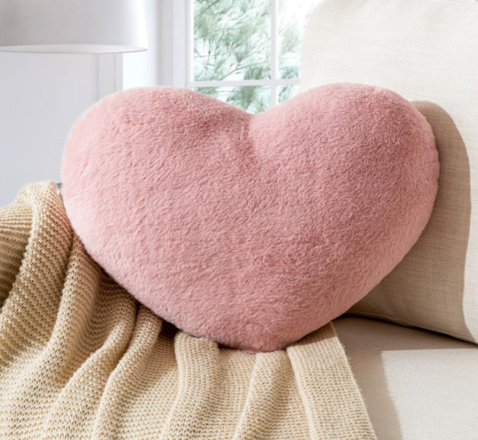 A heart throw pillow is the easiest way to add some valentine decor to a dorm room.